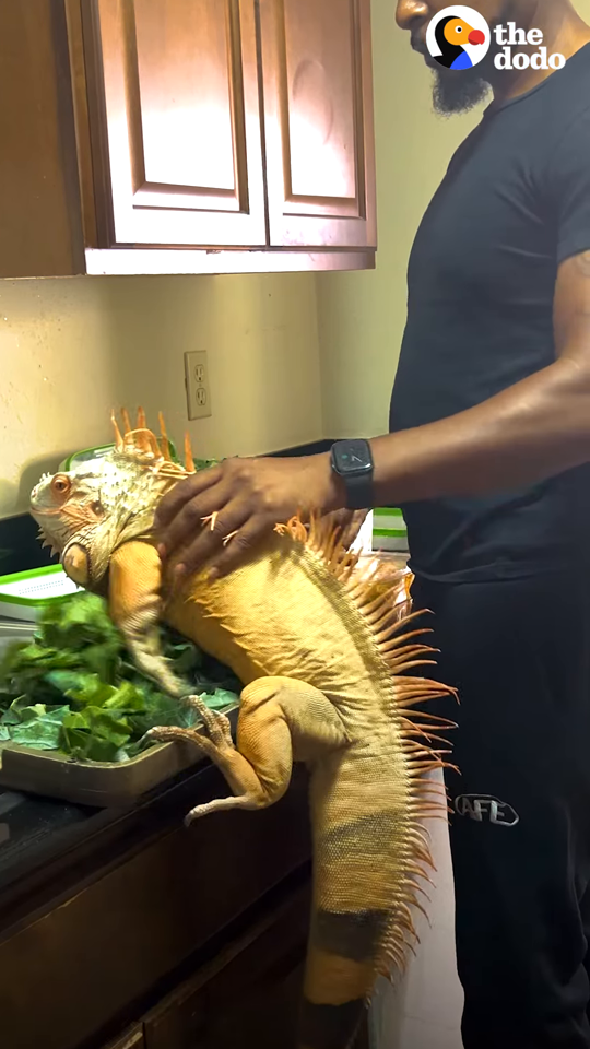 Needy iguana follows his dad from room to room and does the wildest thing when he opens the fridge ๐๐งก