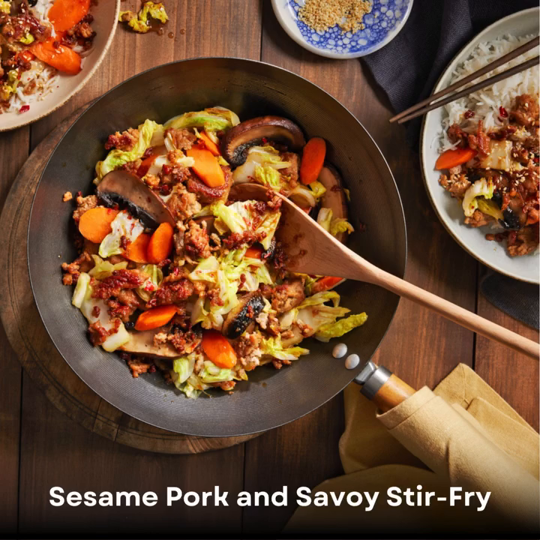 Say hello to your new weeknight dinner hero: Sesame Pork and Savoy Stir-Fry! With tender Ontario Pork, crisp veggies, and a savory sesame sauce, this dish is ready in a flash and sure to please the whole family.